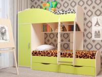 Детский комплекс «Жемчужина». В ней мы учли все пожелания родителей и получили синтез удобства и стиля. Современная двухъярусная кровать содержит 2 просторных спальных места. Их дополняют автономные выдвижные ящики для белья или игрушек. Их можно перемещать куда угодно, а благодаря колёсным опорам ящики не повреждают пол. Удобным также будет глубокий шкаф со штангой и полками. Ну а дополняют конструкцию открытые нишей для книг и нужных мелочей. Приятным бонусом служит универсальность кровати, что позволяет собрать её на любую сторону.