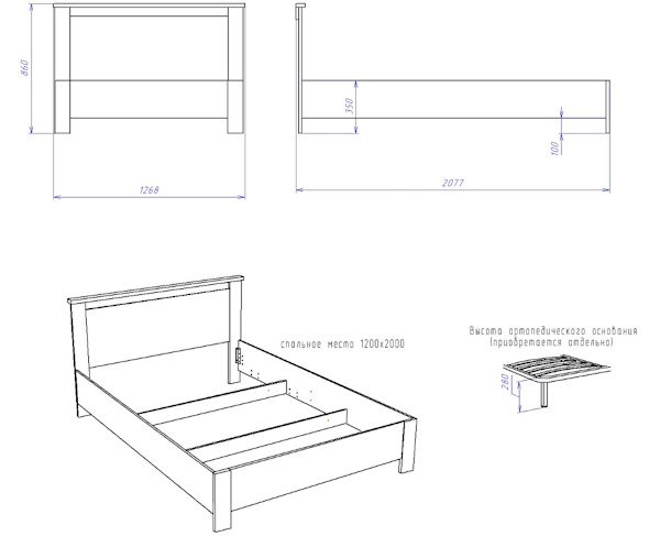 Матрац и ортопедическое основание в комплект не входят, необходимо приобрести отдельно.