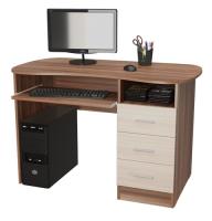 Стол письменный Меркурий – удобный предмет обстановки, предназначенный для работы и учёбы. Поверхность столешницы имеет овальную форму. Для удобства пользования компьютерной клавиатурой предусмотрена выдвижная полка. Справа расположена секция с тремя выдвижными ящиками и полой нишей. Качественная фурнитура обеспечивает комфортную эксплуатацию изделия. Производитель предлагает два цветовых решения с двумя контрастными оттенками каждое. Оптимальная высота (75 см) обеспечивает удобство размещения за столом.